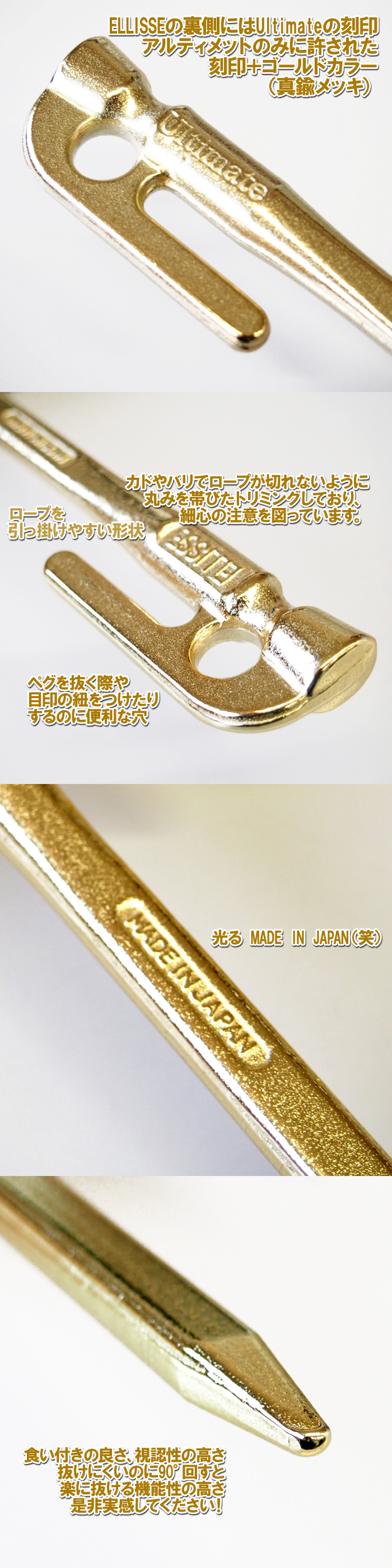 通常の丸棒のペグは地中でペグがクルクルと回り使い勝手が悪いですが、この楕円のペグは、砂利や石が混じった固い地面でも入り込みが良く、地中でクルクルと回る事なく、ガッチリと固定します。