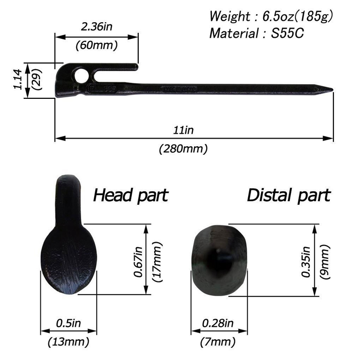 芝生や砂利などに置いたペグが目立たなくて苦労する! そんな声から、あえて色を付けました。 防錆性能に優れたカチオン電着に粉体塗装を施してあります。 どんなシーンでも扱いやすいサイズの全長280mmです。