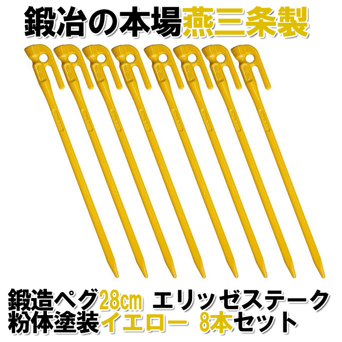 【頑張って送料無料!】 鍛造ペグ エリッゼステーク28cm 8本セット MK-280YL×8本 粉体塗装 イエロー 黄色 フォージドステークス インナーテントやレジャーシートの固定に便利! デザインコンペでIDS賞受賞 エリステ