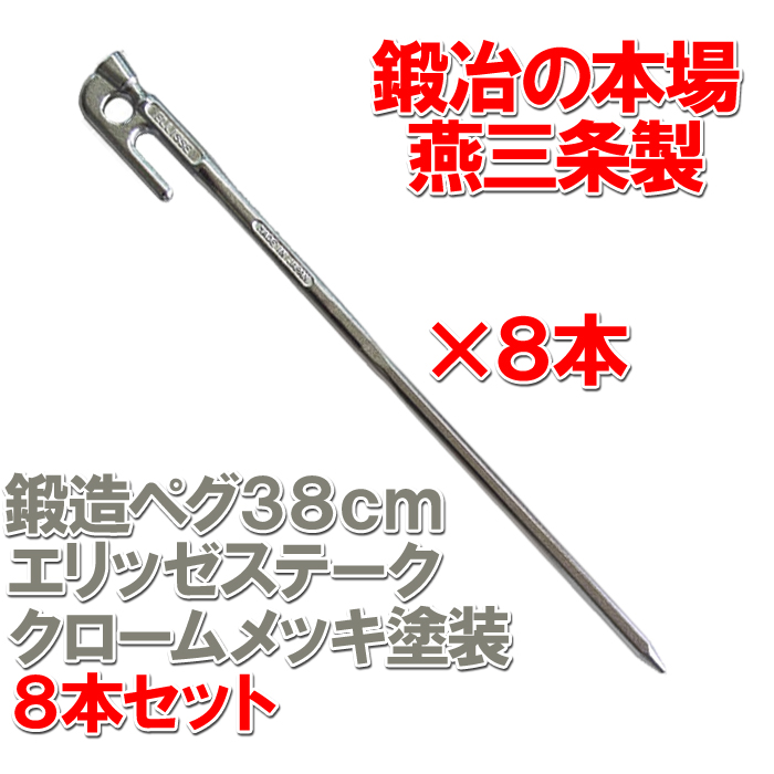 芝生や砂利などに置いたペグが目立たなくて苦労する! そんな声から、あえて色を付けました。 非常に硬く、光沢があり大気中での腐食が少ないクロームメッキ。 気品あるカラーはメインポールに最適な全長380mmです。