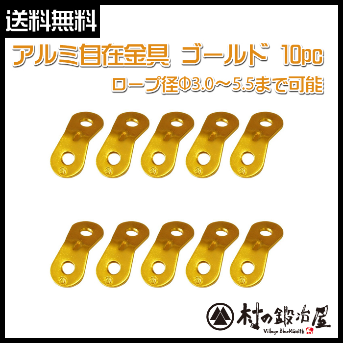 【頑張って送料無料!】 アルミ自在金具ゴールド 10個入ALM-GOLD-10P 発色綺麗な黄金色の自在! ロープ径φ3.0-5.5mmまで対応 ネコポスのため代引・日時指定不可