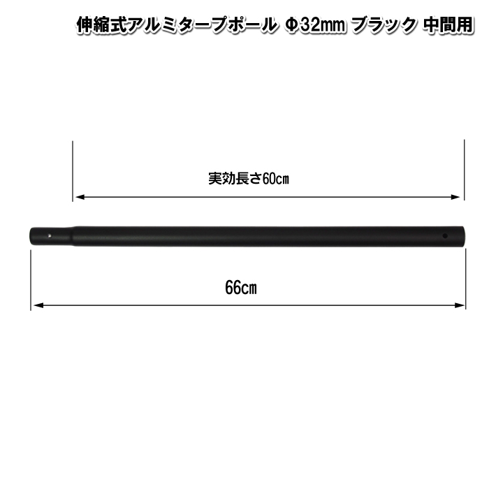 60cm長くできるアルミタープ用中間ポールブラック Φ32mm