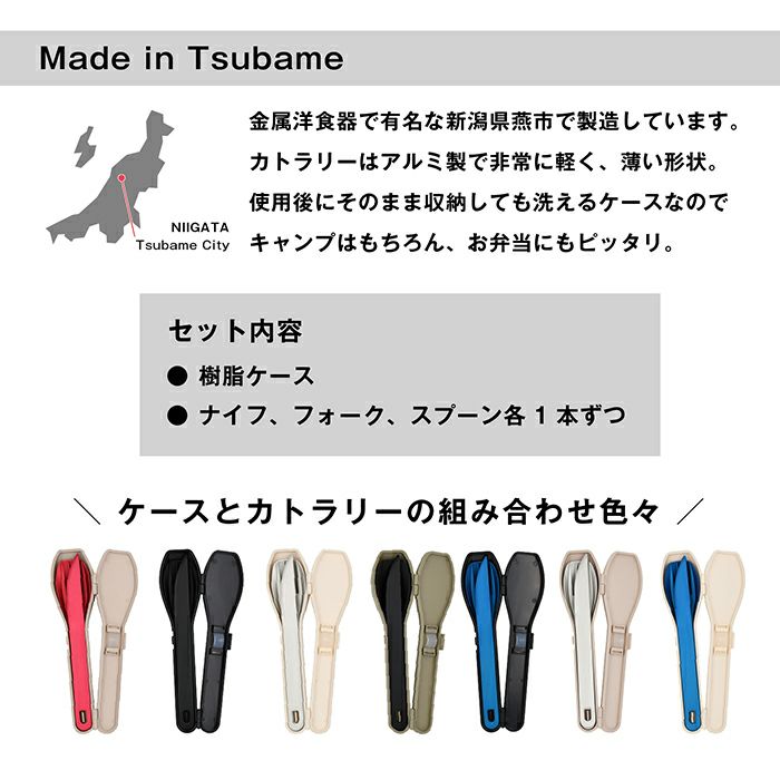 他の画像を見る お弁当、キャンプ、出張、オフィスなど様々なシーンで使いやすい 村の鍛冶屋 アルミカトラリーセット 樹脂ケース、ナイフ、フォーク、スプーンのセット! 選べる各4カラー! ネコポス配送 税込価格 ¥ 2,530 税込 カートに入れる お気に入りに登録する