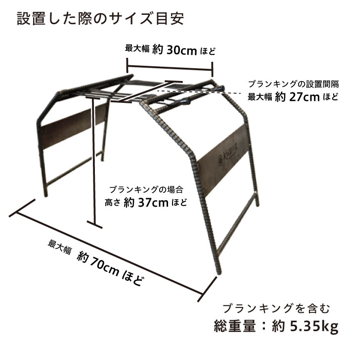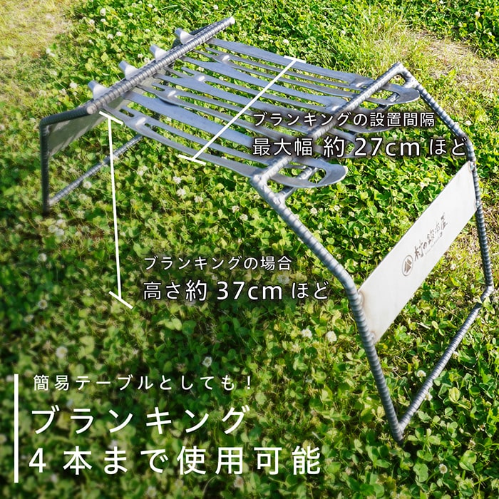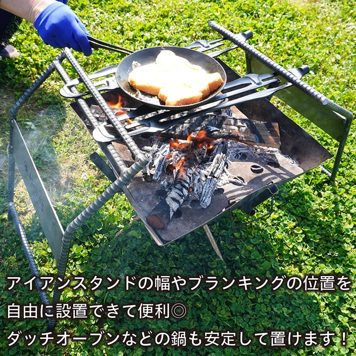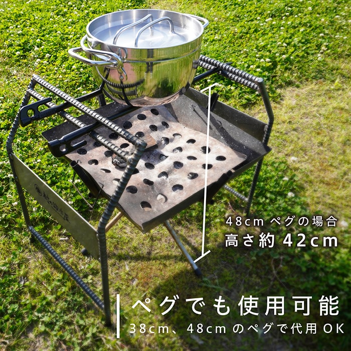 ペグの型抜き後の素材で、アイアンスタンドで使用する以外にも五徳やディスプレイなど使い方色々。