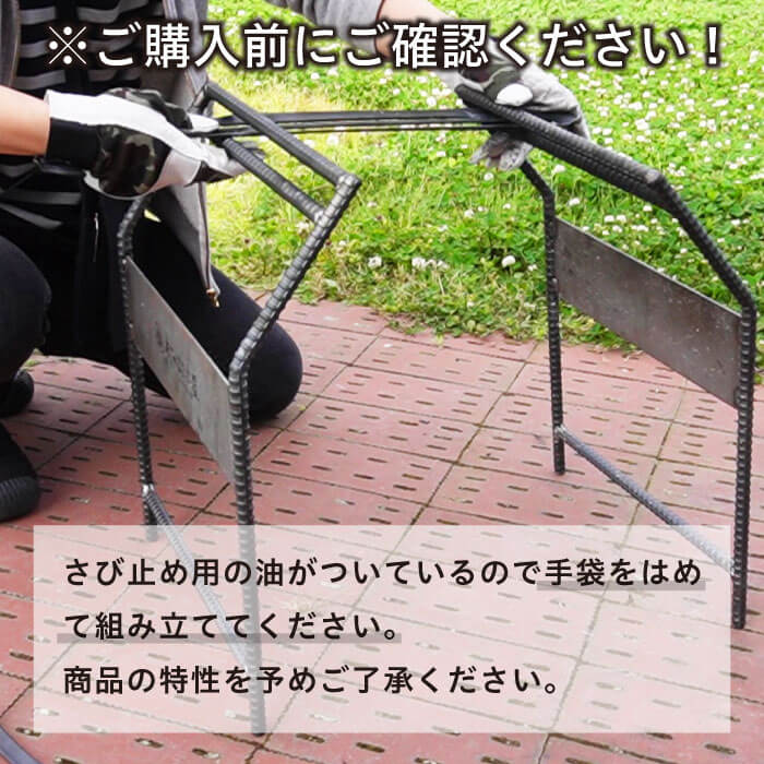 さび止め用の油がついているので手袋をはめて組み立ててください。