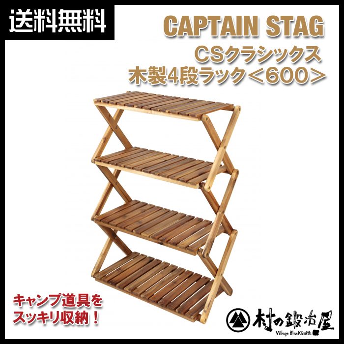 【頑張って送料無料!】キャプテンスタッグ CS CLASSICS CSクラシックス 木製4段ラック<600> UP-2544 キャンプ道具をスッキリ整頓! キャプスタ CAPTAIN STAG コーナンラック