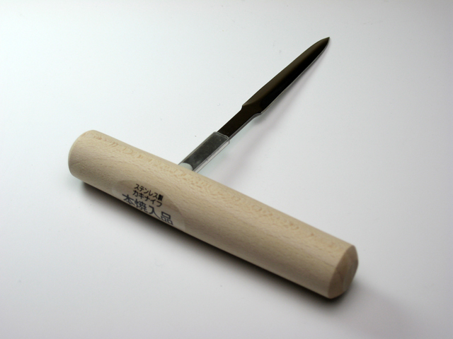 ■職人さんから、「真ん中より端の方がやりやすい」との事で、L型のカキナイフが完成しました。プロも愛用品ですので、牡蠣剥きが簡単にできます。