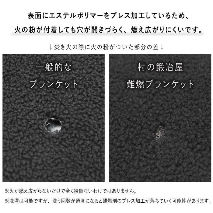 村の鍛冶屋 難燃ブランケット 収納袋のバッグ付き 焚き火シーンでも使える!秋冬のキャンプで活躍 約138×78cm ハーフサイズ 【頑張って送料無料!】