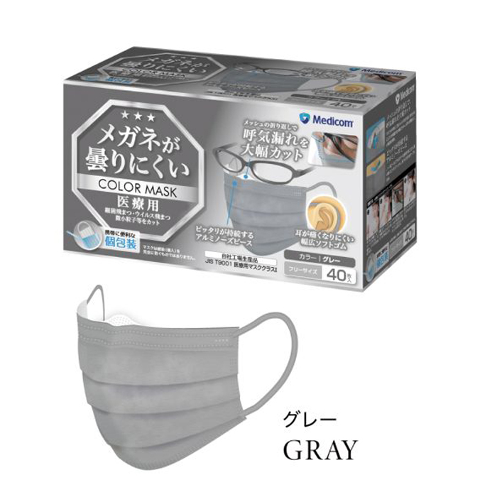 Medicom Japan メディコム メガネが曇りにくいカラーマスク ピンクベージュ/ベージュ/グレー (40枚入)『医療用カラーマスク』 LEVEL1 JMK200686-687698