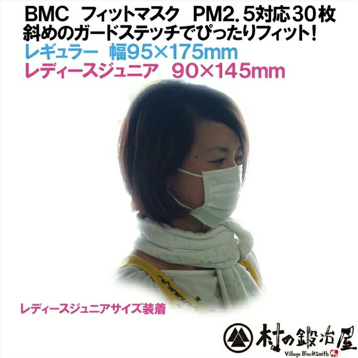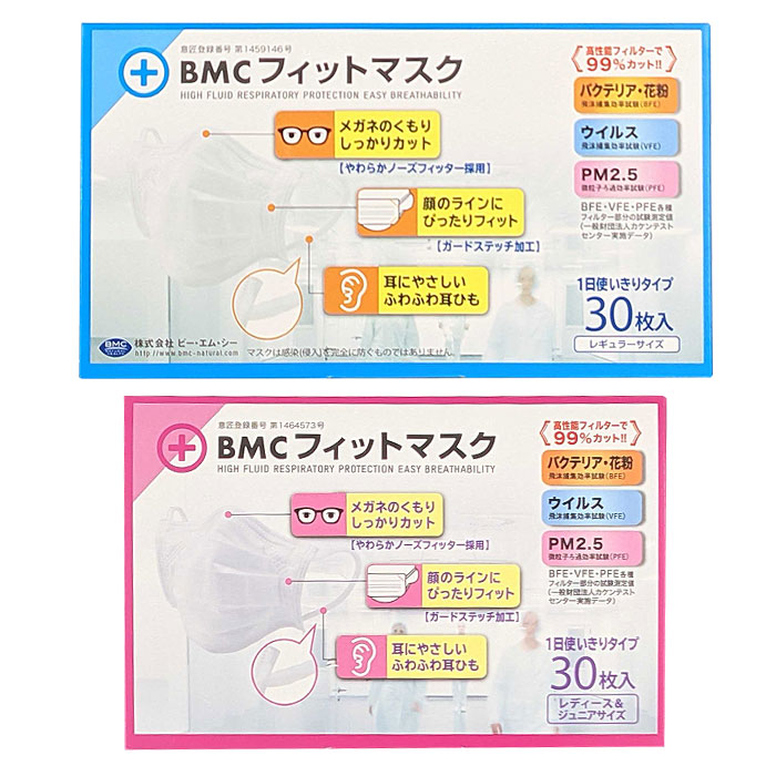 BMC フィットマスク 60枚入り※レギュラー/女性ジュニア用使い捨てサージカルマスクPM2.5対応うちの嫁絶賛!ピッタリくっつくけど口の周りに隙間があいて口紅つきにくい!【頑張って送料無料!】