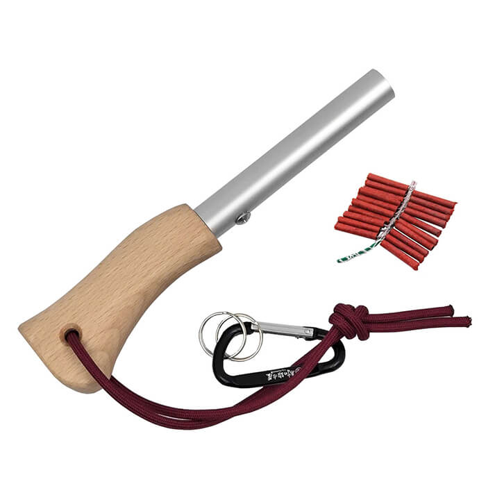 【熊おどしノーマル爆竹付き】村の鍛冶屋 爆竹用 熊おどし アルミ 木柄 カラビナ 爆竹20本付 MK-0148【燕三条製】