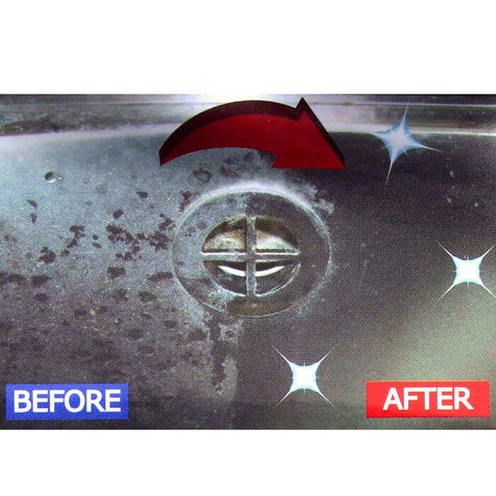 素材を傷つけにくく、光沢を損なうことなく頑固なスケールやカルシウムなどの無機汚れの固着を除去します。