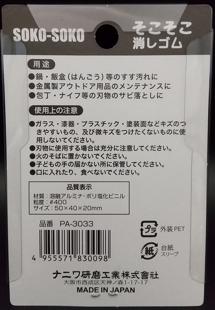【PA-3033】そこそこ消しゴム 新潟ナニワキャンプでの鍋や飯盒のすす汚れに 【ネコポス配送】【頑張って送料無料】