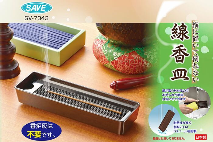 他の画像を見る お線香を寝かせて置ける線香皿 【SV-7343】SAVE 横に置いて倒れない線香皿線香立ではないので香炉灰は不要地震などで線香が倒れる心配がありません日本製 税込価格 ¥ 2,563 税込 詳細を見る お気に入りに登録する